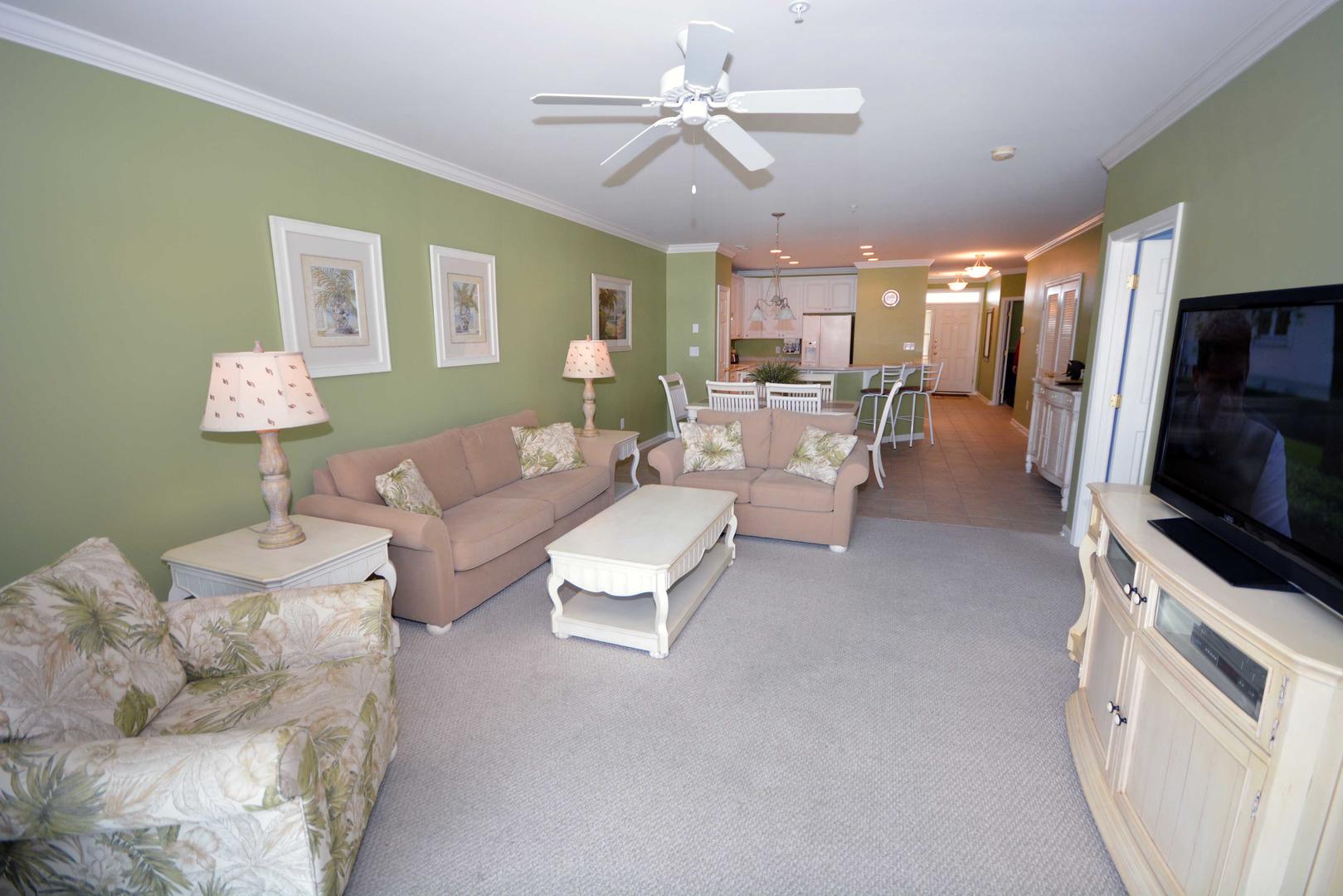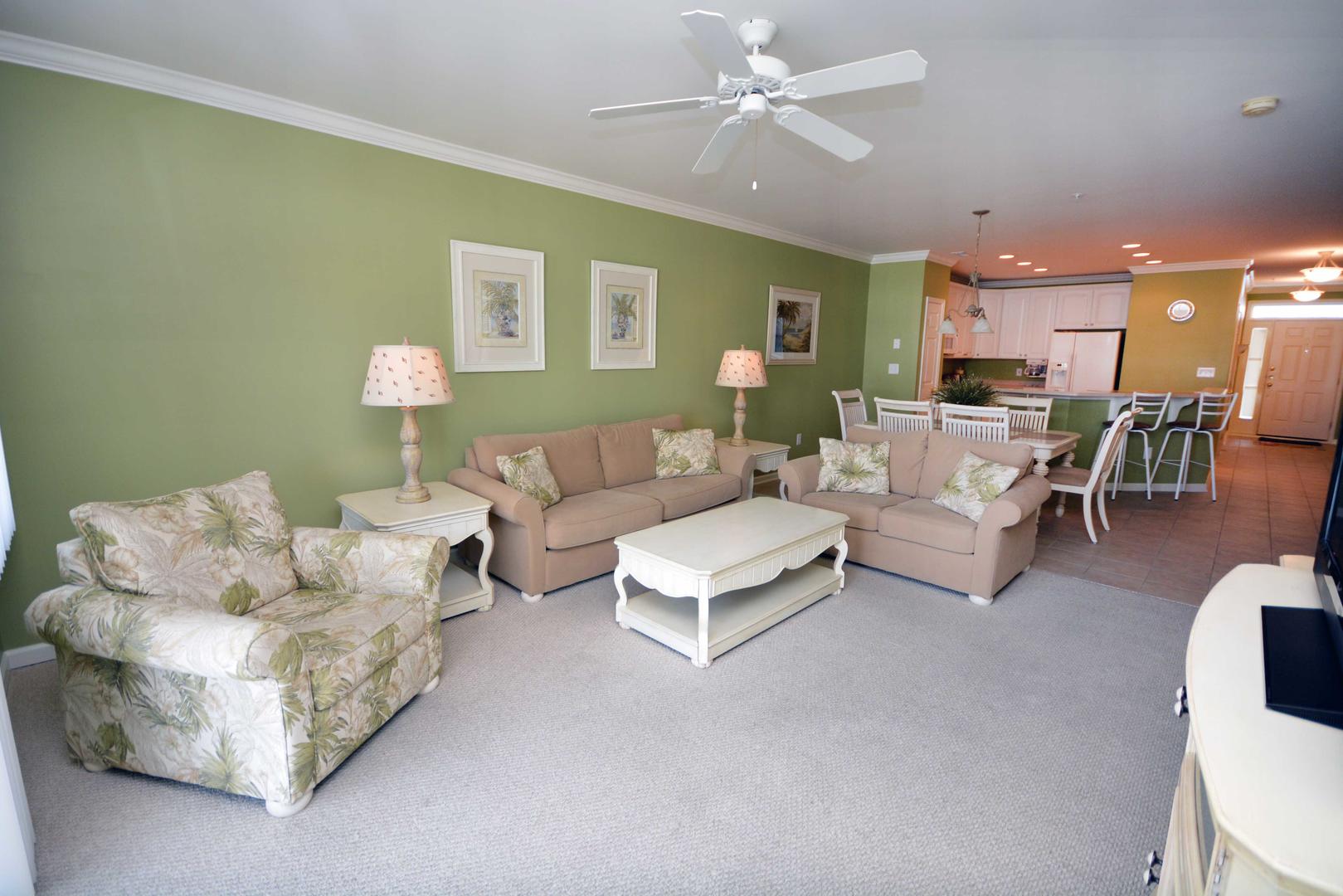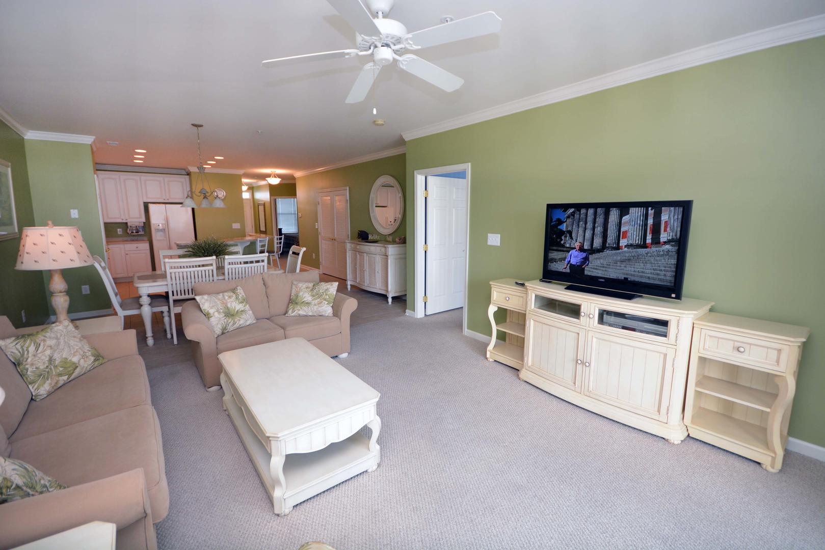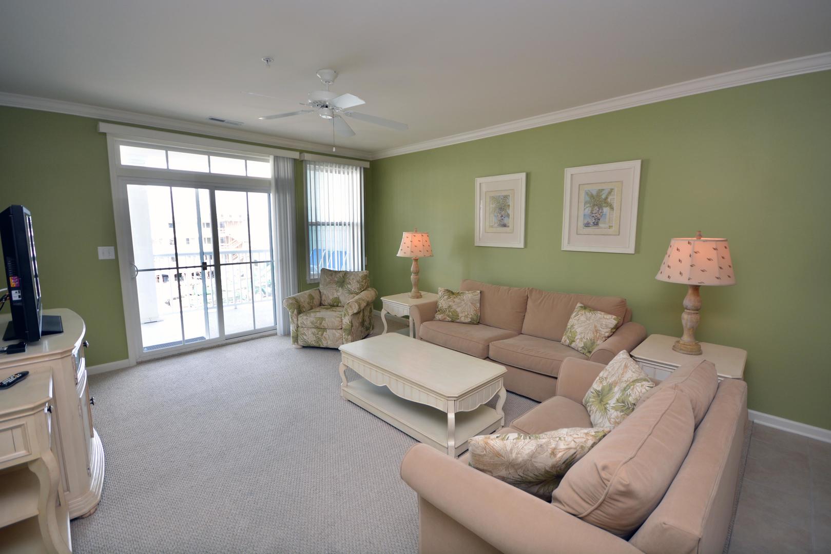 Sunset Island 4-B is a bayside condominium with a calming color palette. This three-bedroom, two-bathroom condo has a furnished balcony overlooking beautiful manicured lawns with a glimpse of the picturesque marshes. This unit is the perfect place for you and your family to call home for a week! Sunset Island 4-B is one of Ocean City's finest rentals. The homey, beach-colored living room is furnished with comfy couches, a cozy arm chair, and a television. The larger couch doubles as a queen-size sleep sofa. The sliding balcony doors allow plenty of natural light to brighten the space. Right off the living room is a small dining area, perfect for cozy meals with the family. Next to the dining area is the fully-stocked kitchen with an island, just right for grabbing a quick bite. The master bedroom has a king-size bed, a personal television, a private bathroom, and access to the balcony. The second and third bedrooms each have a queen-size bed and a personal television. The third bedroom has a queen-size bed and a personal television. The second bathroom is located in the hallway. This property comfortably sleeps up to eight people, so bring the whole family! Sunset Island 4-B has the following amenities: central air conditioning, indoor and outdoor pool, kiddie pool, private beaches, sun deck, island cafe, interactive fountain, gym/fitness center, walking trail, security guards, two parking spaces, four TVs, four DVD players, free WiFi (at Club House only), cable TV, full-size washer and dryer, refrigerator, ceiling fans, ice maker, microwave, coffee maker, toaster, stove, disposal, dishwasher, and an outdoor foot shower. Six facility passes provided. Additional passes are $75 each at the Sunset Island clubhouse. Bed sizes: BR1=KING BR2=QUEEN BR3=QUEEN L.ROOM = QUEEN SLEEP SOFA This property does not allow pets or smoking. Shoreline Properties rents to families and responsible individuals over the age of 25. Come stay at Sunset Island and create wonderful memories to last you and your family a lifetime!
