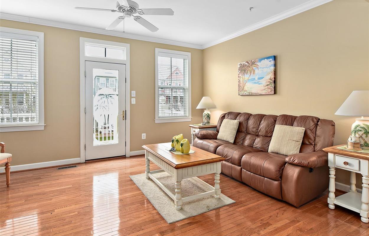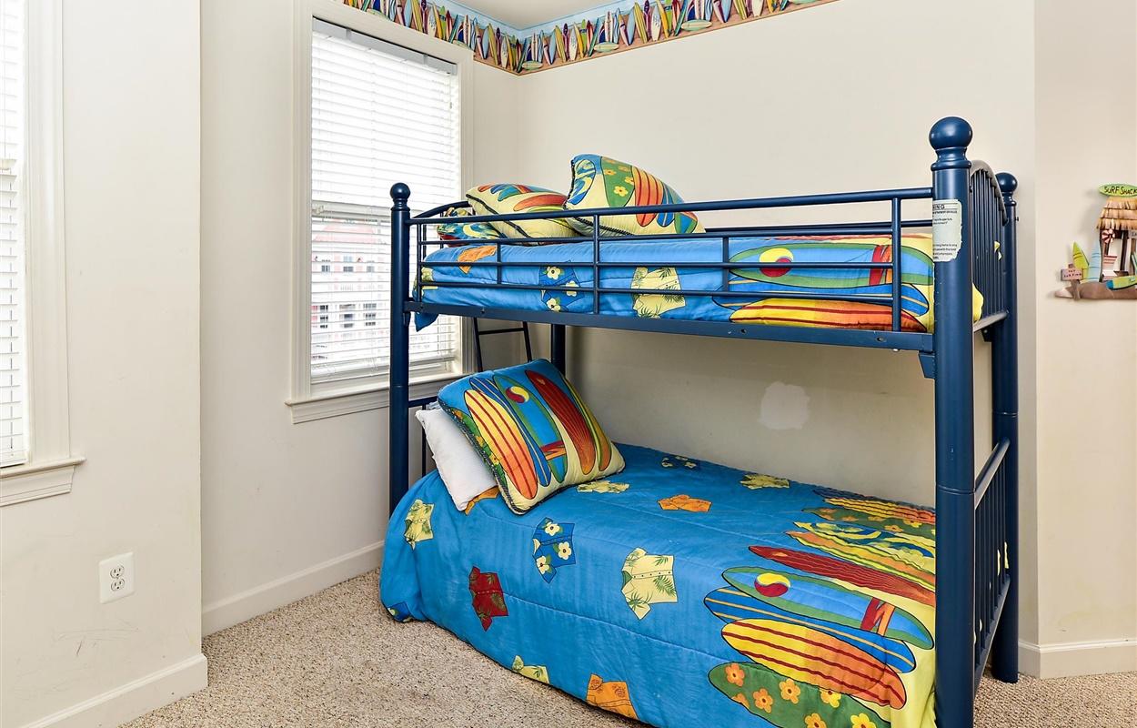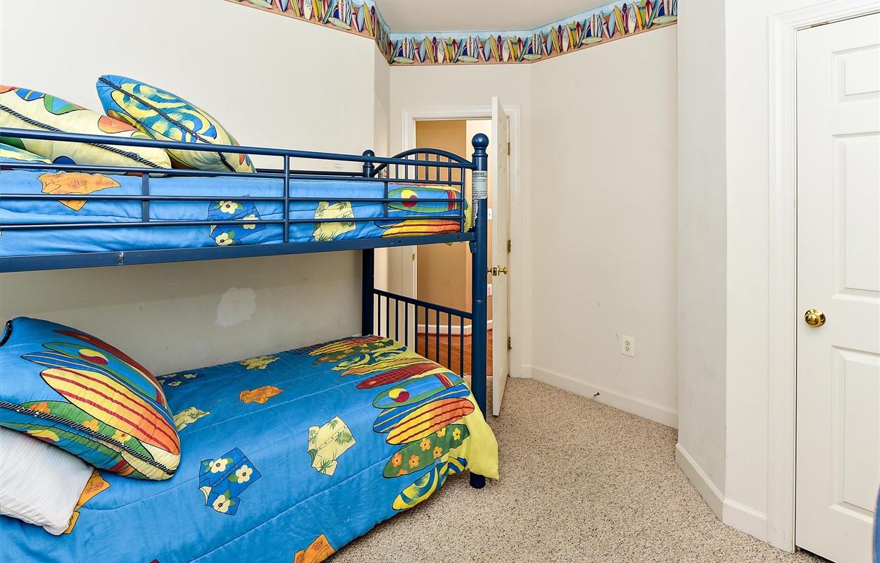Sunset Island 31 is a modern bayside townhouse located in a gated community. This five-bedroom, four and a half-bathroom townhome has a balcony overlooking the picturesque harbor. This unit is the perfect place for you and your family to call home for a few days! Sunset Island 31 is one of Ocean City's finest vacation rentals. The warm, spacious living room is furnished with a comfortable sofa, matching chairs and a flat-screen television. The glass-paneled door allows plenty of natural light to brighten the space. Right off the living room is a dining area, perfect for cozy meals with the family. Next to the dining area is the fully-stocked kitchen with granite counters and an island, just right for grabbing a quick bite. Beside the kitchen is a second, larger dining area. Past the second dining area is another sitting area with a couch and a television. Also off the kitchen is a half-bathroom. On the third floor, you'll find three bedrooms. The master bedroom has a king-size bed, a television and a private bathroom. The second bedroom has bunk beds and the third bedroom has a pyramid bunk bed with a double on the bottom with a twin over top. The second full bathroom is located in the third-floor hallway. The fourth floor holds the loft bedroom with a double bed, a television, a sitting area, a private bathroom and balcony access. The fifth bedroom (den) is located on the bottom floor and has a queen bed. The fourth full bathroom is also located on the bottom floor. This property comfortably sleeps up to eleven people, so bring the whole family! Bed Sizes: BR#1-King BR#2-Bunk Beds BR#3-Pyramid Bunk Beds (Double+Twin) BR#4-Double (Loft) BR#5-Queen (Den) Sunset Island 31 has the following amenities: central air conditioning, indoor and outdoor pool, kiddie pool, private beaches, sun deck, island cafe, interactive fountain, gym/fitness center, walking trail, security guards, three parking spaces, garage, three TVs, one DVD player, free WiFi, cable TV, full-size washer and dryer, refrigerator, ceiling fans, microwave, coffee maker, toaster, stove, disposal, dishwasher, and an outdoor foot shower. Six facility passes provided with paid Sunset Island registration fee. Additional passes can be purchased at the Sunset Island clubhouse. This property does not allow pets or smoking. Shoreline Properties rents to families and responsible individuals over the age of 25. Come stay at Sunset Island and create wonderful memories to last you and your family a lifetime!