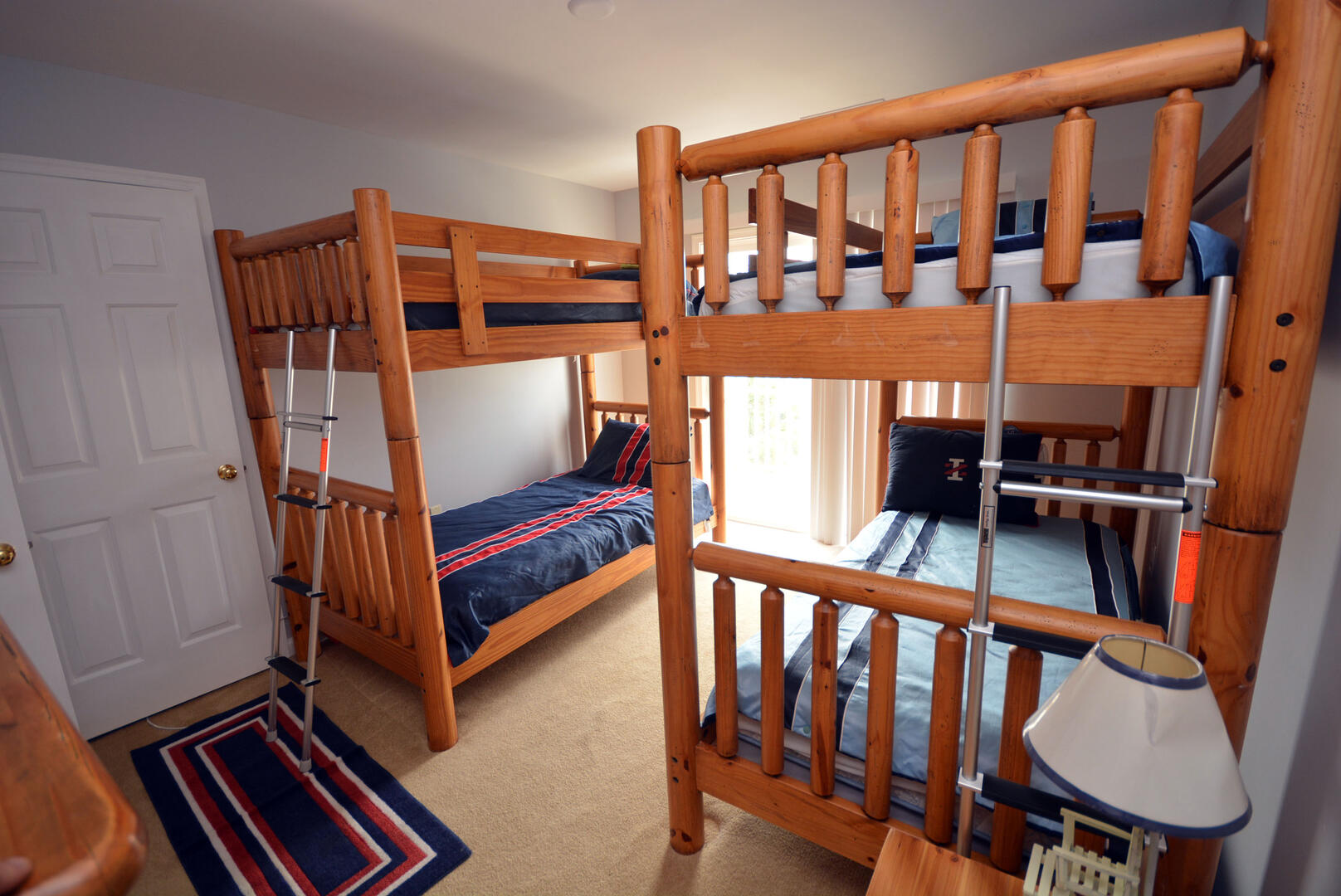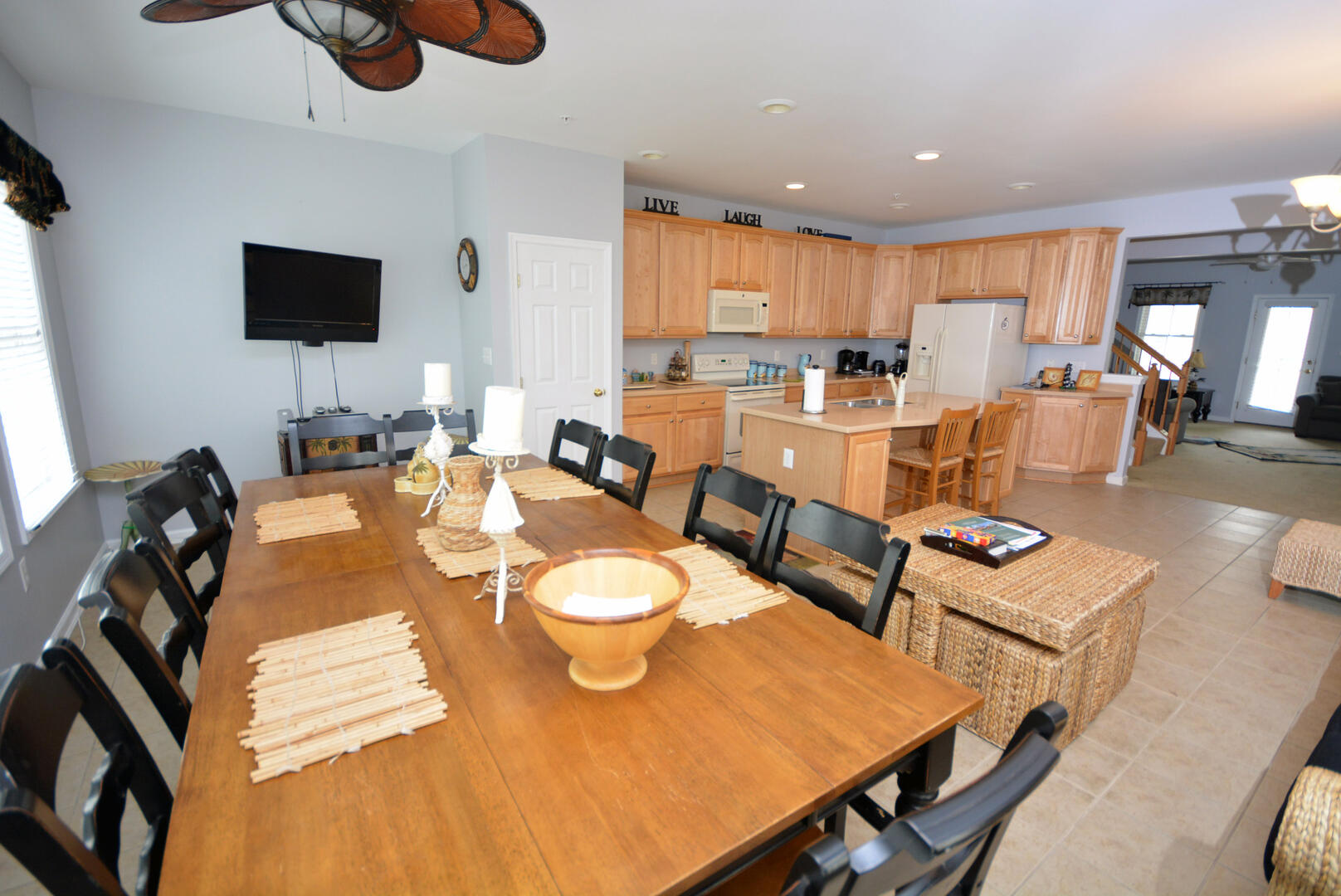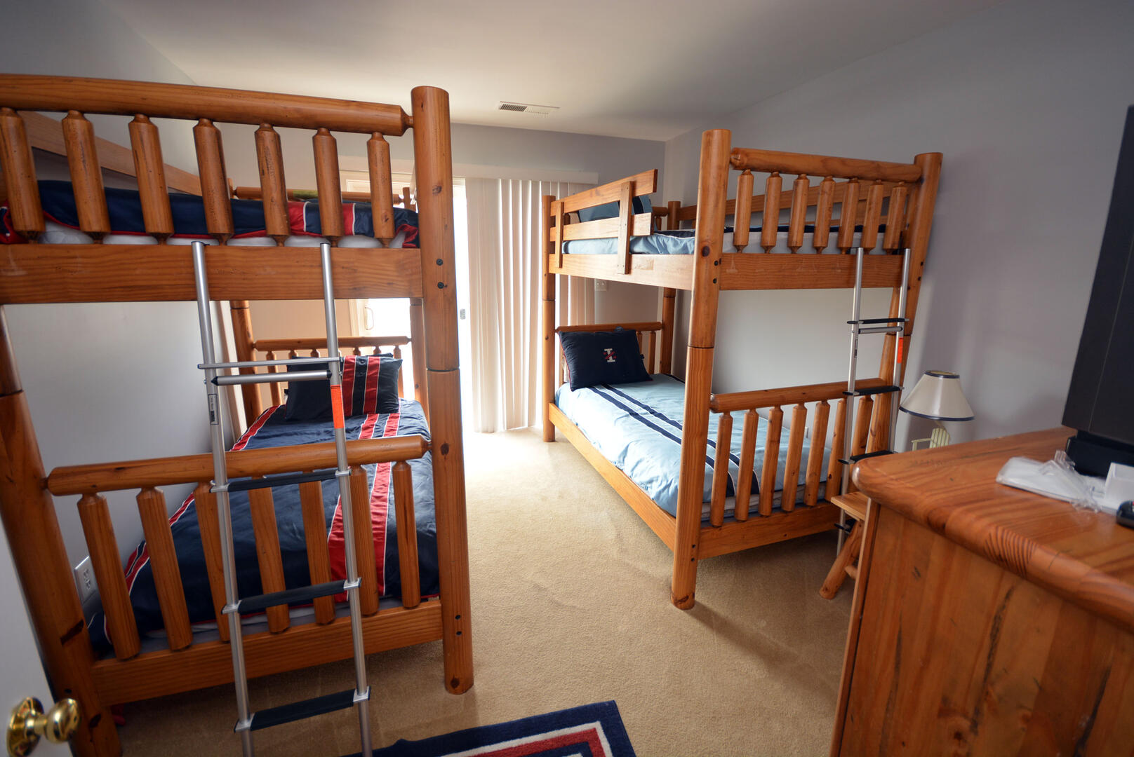 Sunset Island 17 is a luxury bayside townhouse located in a gated community. This five-bedroom, three and a half-bathroom townhome has a furnished balconies and a porch. This house is the perfect place for you and your family to call home for a week! Sunset Island 17 is one of Ocean City's finest vacation rentals. Classy and beach-themed, this house is the perfect place to host a family reunion. The living room is furnished with matching steel gray couches and armchairs and a flat screen TV. The windows allow plenty of natural light to brighten the space. Next to the living room is the fully stocked kitchen with a island, just right for grabbing a quick bite. Pass the kitchen is a large dining area with an extra sitting area and a flat screen TV along with a half bath off of the living area. There is seating in the kitchen area for 26 which includes 12 at the large dining table, 2 at the counter, 4 at the game table and 4 pull out seats around the large ottoman and 4 on the large sofa and chair. On the next level you will find the master bedroom with a king-size bed, a flat screen TV, and a private bathroom. The master bathroom features a standing shower and soaking tub. The second bedroom has queen-size bed and flat screen TV. The third bedroom has a pyramid bunk bed and a day bed with trundle a trundel. The second full bathroom is located in the hallway. On the top floor is the loft, which is where you'll find the fourth bedroom. This bedroom has two sets of bunk beds and a TV, there is also a full bathroom on the loft floor. The ground floor houses the den/5th bedroom with a twin bed and television. There is a half-bathroom located on this entry floor. This property comfortably sleeps up to twelve people, so bring the whole family! Bed Sizes: BR1- King BR2- Queen BR3- Pyramid Bunk Bed (Double & Twin) & Twin Trundle BR4- 2 Bunk Beds (4 Twins) BR5- Daybed with Trundle House Amenities: central air conditioning, seven TVs, free Wi-Fi (April-November), cable TV (April-November), 2 DVD players, 1 Blue Ray player, ceiling fans, full-size washer and dryer, refrigerator, ice maker, microwave, coffee maker, air fryer, toaster, stove, disposal, dishwasher, and three parking spaces, a 4th parking pass may be available for a fee. Community Amenities: outdoor pool, indoor pool, kiddie pool, private beaches, island cafe, interactive fountain, fishing/crabbing pier, gym/fitness center, walking trail, security guards, and an outdoor foot shower. Six facility passes are provided, additional passes are $70 each at the Sunset Island Clubhouse. This property does not allow pets or smoking. Shoreline Properties rents to families and responsible individuals over the age of 25. Come stay at Sunset Island and create wonderful memories to last you and your family a lifetime!