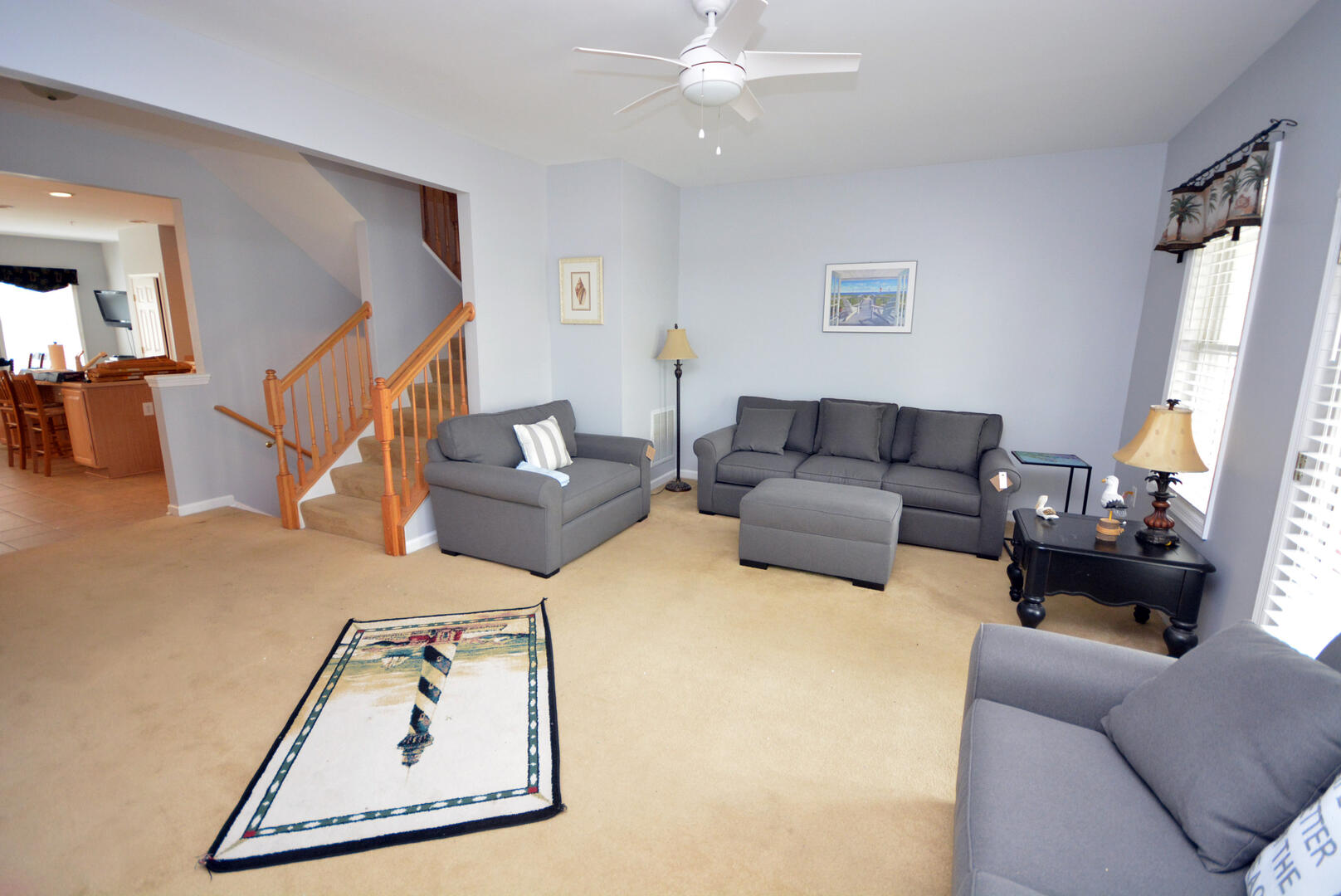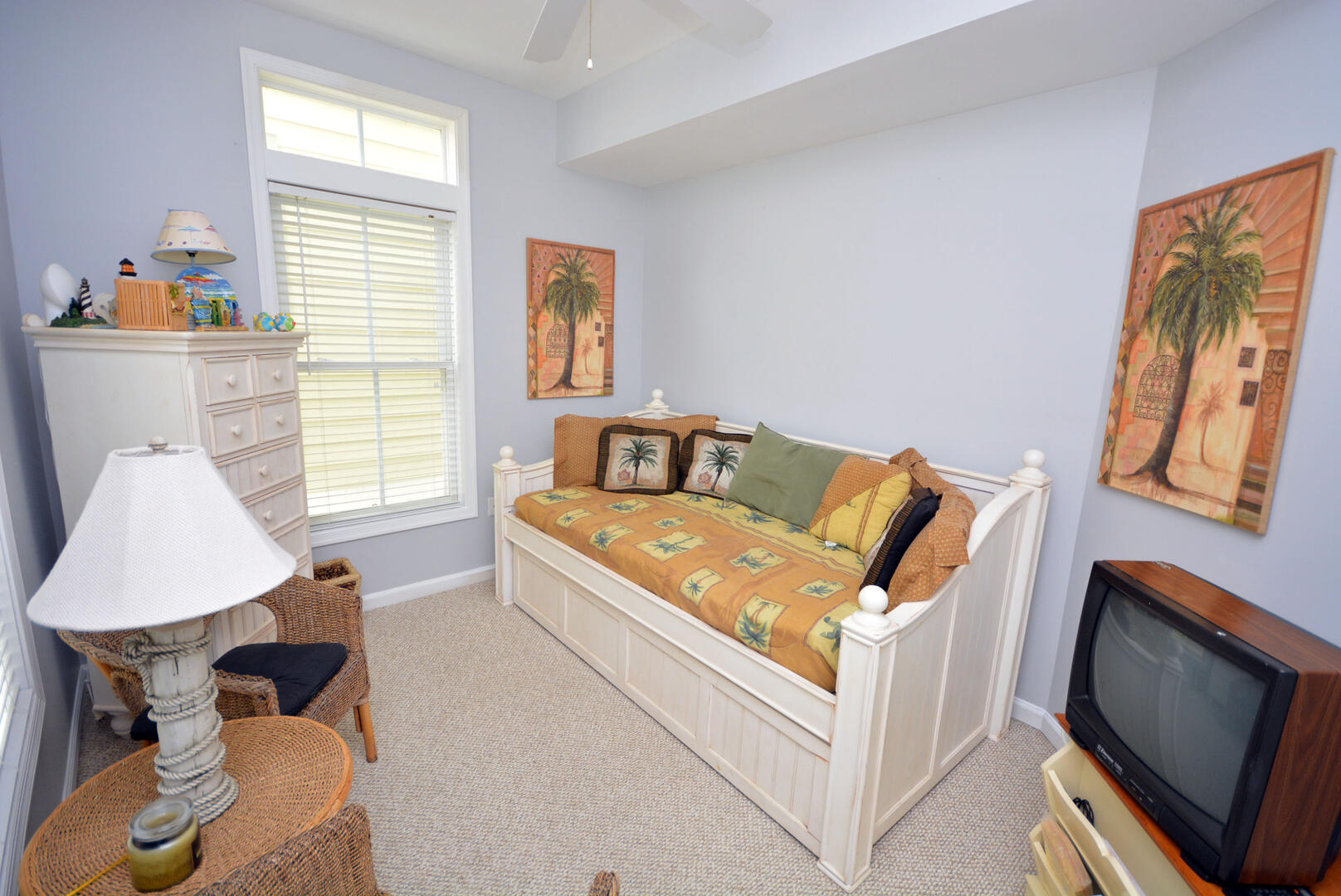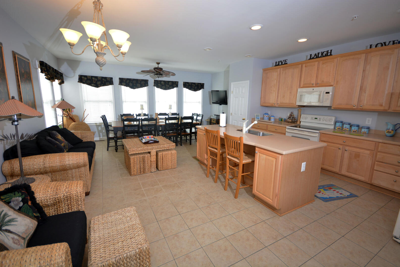Sunset Island 17 is a luxury bayside townhouse located in a gated community. This five-bedroom, three and a half-bathroom townhome has a furnished balconies and a porch. This house is the perfect place for you and your family to call home for a week! Sunset Island 17 is one of Ocean City's finest vacation rentals. Classy and beach-themed, this house is the perfect place to host a family reunion. The living room is furnished with matching steel gray couches and armchairs and a flat screen TV. The windows allow plenty of natural light to brighten the space. Next to the living room is the fully stocked kitchen with a island, just right for grabbing a quick bite. Pass the kitchen is a large dining area with an extra sitting area and a flat screen TV along with a half bath off of the living area. There is seating in the kitchen area for 26 which includes 12 at the large dining table, 2 at the counter, 4 at the game table and 4 pull out seats around the large ottoman and 4 on the large sofa and chair. On the next level you will find the master bedroom with a king-size bed, a flat screen TV, and a private bathroom. The master bathroom features a standing shower and soaking tub. The second bedroom has queen-size bed and flat screen TV. The third bedroom has a pyramid bunk bed and a day bed with trundle a trundel. The second full bathroom is located in the hallway. On the top floor is the loft, which is where you'll find the fourth bedroom. This bedroom has two sets of bunk beds and a TV, there is also a full bathroom on the loft floor. The ground floor houses the den/5th bedroom with a twin bed and television. There is a half-bathroom located on this entry floor. This property comfortably sleeps up to twelve people, so bring the whole family! Bed Sizes: BR1- King BR2- Queen BR3- Pyramid Bunk Bed (Double & Twin) & Twin Trundle BR4- 2 Bunk Beds (4 Twins) BR5- Daybed with Trundle House Amenities: central air conditioning, seven TVs, free Wi-Fi (April-November), cable TV (April-November), 2 DVD players, 1 Blue Ray player, ceiling fans, full-size washer and dryer, refrigerator, ice maker, microwave, coffee maker, air fryer, toaster, stove, disposal, dishwasher, and three parking spaces, a 4th parking pass may be available for a fee. Community Amenities: outdoor pool, indoor pool, kiddie pool, private beaches, island cafe, interactive fountain, fishing/crabbing pier, gym/fitness center, walking trail, security guards, and an outdoor foot shower. Six facility passes are provided, additional passes are $70 each at the Sunset Island Clubhouse. This property does not allow pets or smoking. Shoreline Properties rents to families and responsible individuals over the age of 25. Come stay at Sunset Island and create wonderful memories to last you and your family a lifetime!