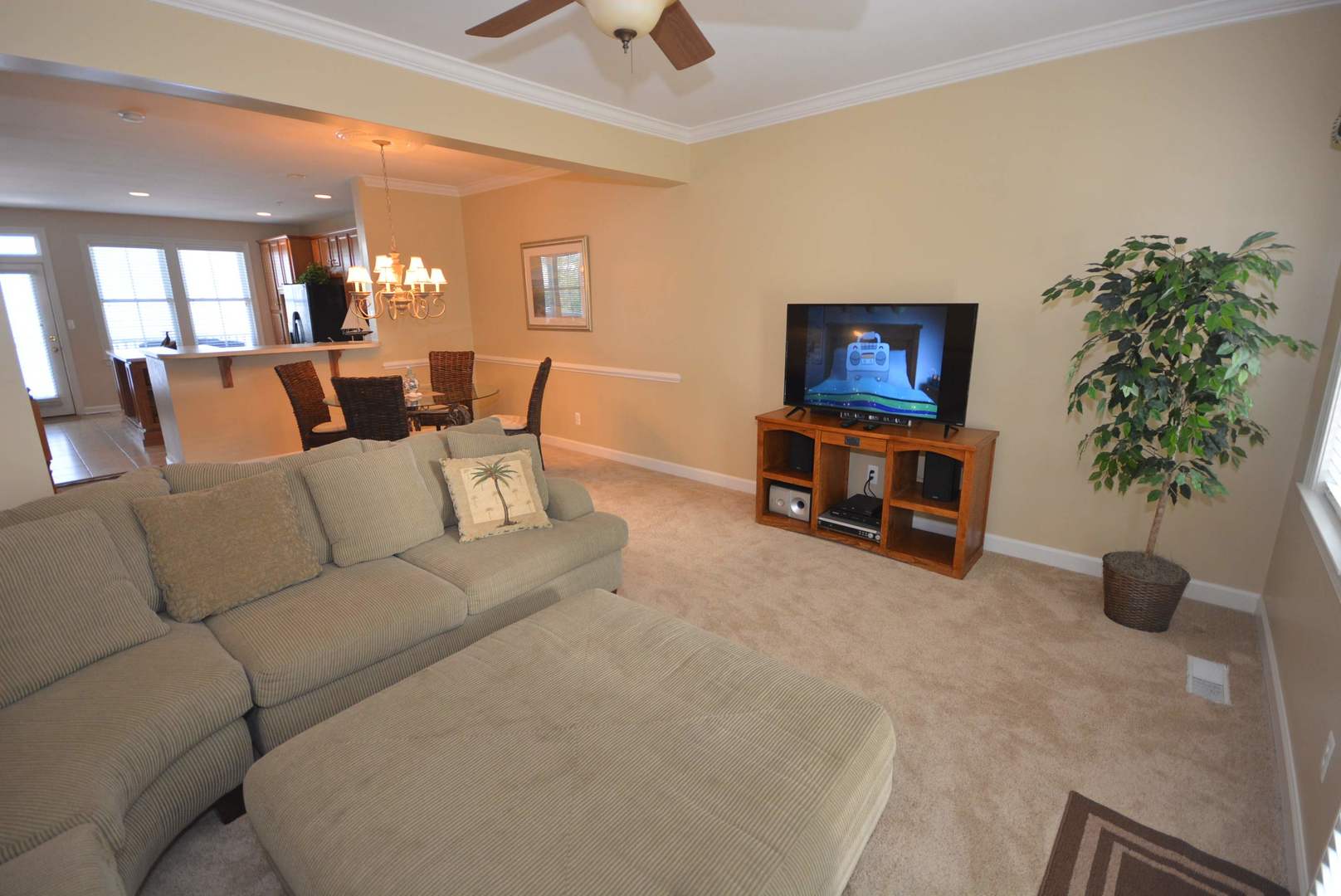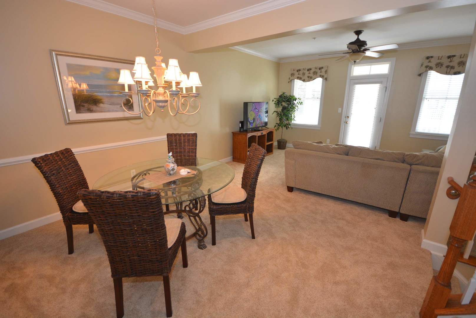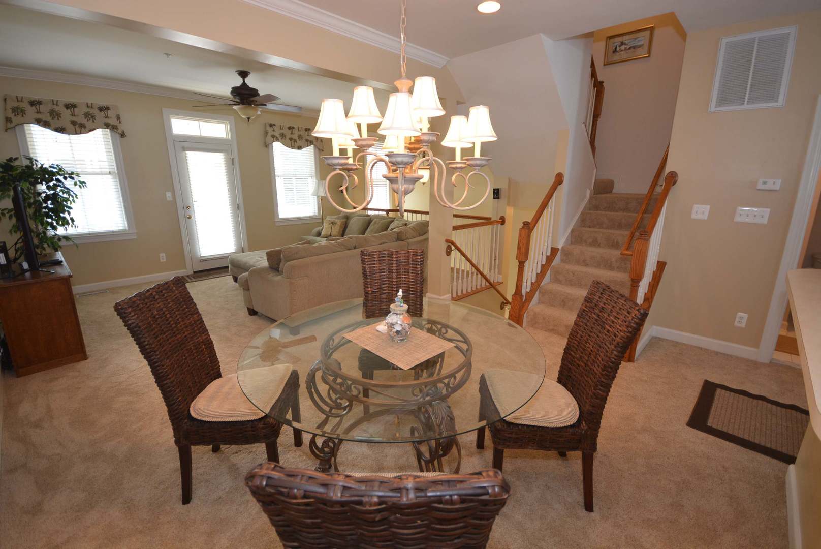 Sunset Island 31 is a luxury bayside townhouse located in a gated community. This five-bedroom, four and a half-bathroom townhome has a balcony overlooking a quiet, family-friendly neighborhood. This unit is the perfect place for you and your family to call home for a few days! Sunset Island 31 is one of Ocean City's finest vacation rentals. The cozy, sand-colored living room is furnished with a comfy, cornered couch and a television. The glass-paneled door allows plenty of natural light to brighten the space. Right off the living room is a dining area, perfect for cozy meals with the family. Next to the dining area is the fully-stocked kitchen with an island, just right for grabbing a quick bite. Next to the kitchen is a second dining area with a television. Also off the kitchen is the half-bathroom. The master bedroom has a queen-size bed, a personal television, and a private bathroom. The second bedroom has a pyramid bed. The third bedroom has a queen-size bed. The fourth bedroom is a loft and has a double bed, a private bathroom, and balcony access. The third full bathroom is located in the hallway. The fifth bedroom is located on the bottom floor and has a double bed and personal television. The fourth full bathroom is also located on the bottom floor. This property comfortably sleeps up to eleven people, so bring the whole family! Sunset Island 31 has the following amenities: central air conditioning, indoor and outdoor pool, kiddie pool, private beaches, sun deck, island cafe, interactive fountain, gym/fitness center, walking trail, security guards, one parking space, 5 TVs, one DVD player, free WiFi, cable TV, full-size washer and dryer, refrigerator, ceiling fans, microwave, coffee maker, toaster, stove, disposal, dishwasher, and an outdoor foot shower. Six facility passes provided. Additional passes are available at the Sunset Island clubhouse. Bed sizes: BR1: Double (Den) BR2:Queen bed BR3: Pyramid Bunk Bed (double/twin with twin trundle) BR4= Q BR5=DBL(loft) This property does not allow pets or smoking. Shoreline Properties rents to families and responsible individuals over the age of 25. Come stay at Sunset Island and create wonderful memories to last you and your family a lifetime!