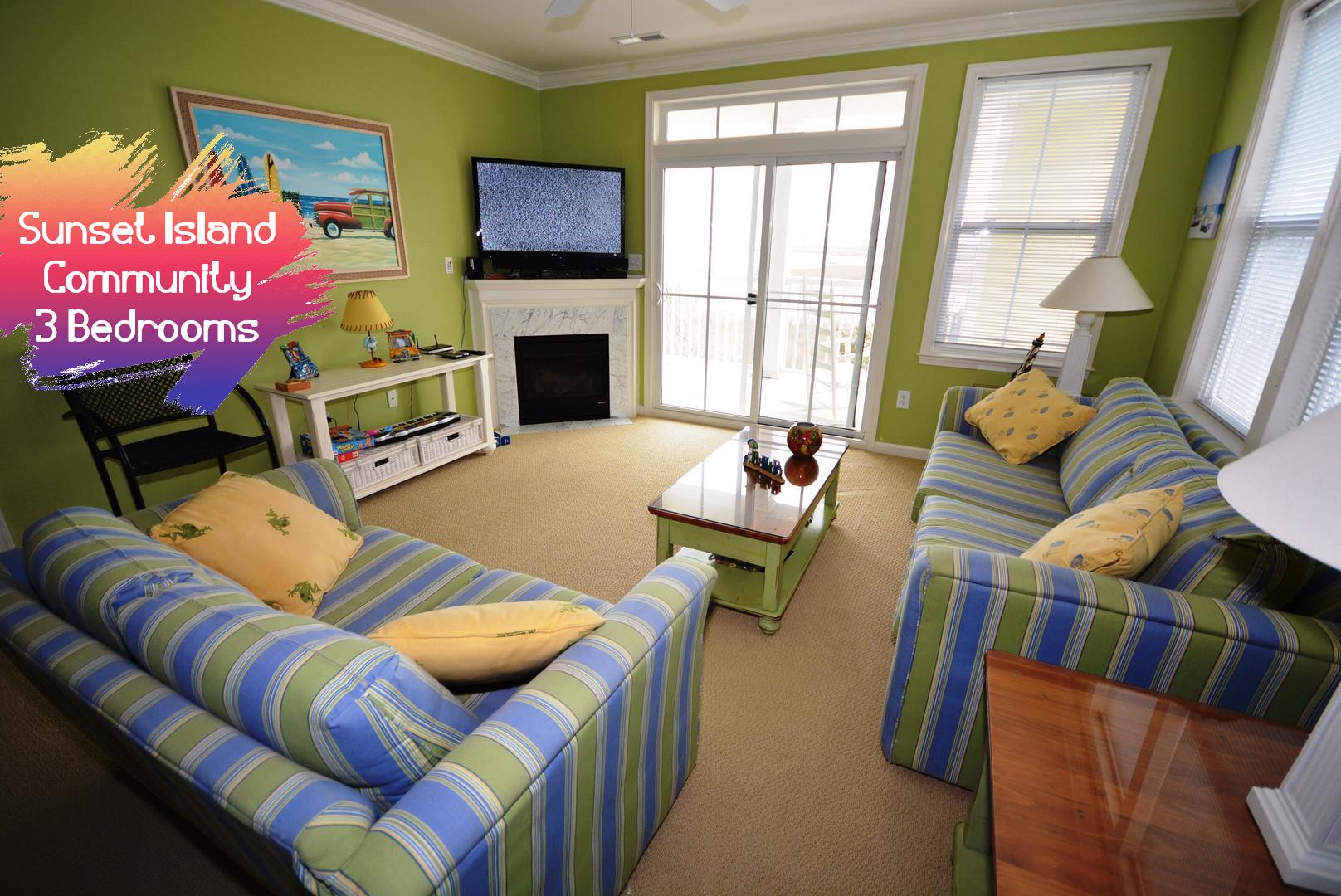 Sunset Island 3-E is a luxury bayside condominium located in a gated community. This three-bedroom, two-bathroom condo has a balcony overlooking the picturesque harbor. This unit is the perfect place for you and your family to call home for a week! Sunset Island 3-E is one of Ocean City's finest vacation rentals. The beachy, ocean-esque living room is furnished with comfy couches, a fireplace, and a television. The larger couch doubles as a queen-size sleep sofa. The sliding balcony doors allow plenty of natural light to brighten the space. Right off the living room is a dining area, perfect for cozy meals with the family. There is also a small, two-person table, great for an intimate meal with your partner on date night. Next to the dining area is the fully-stocked kitchen with an island, just right for grabbing a quick bite. The master bedroom has a king-size bed, a personal television, a private bathroom, and access to the balcony. The second bedroom has a queen-size bed and a personal television. The third bedroom has a pyramid bed and a personal television. The second bathroom is located in the hallway. This property comfortably sleeps up to eight people, so bring the whole family! Bed sizes: BR1=KING BR2=QUEEN BR3=PYRAMID BUNK BED (DOUBLE/TWIN) LIVING ROOM=QUEEN SLEEPER SOFA Sunset Island 3-E Amenities: central air conditioning, two parking spaces, ceiling fans, four TVs, two DVD players, free WiFi, cable TV, full-size washer and dryer, refrigerator, microwave, coffee maker, toaster, stove, disposal, and dishwasher. Sunset Island Amenities: indoor and outdoor pool, kiddie pool, private beaches, sun deck, island cafe, interactive fountain, gym/fitness center, walking trail, security guards, and an outdoor foot shower. Six facility passes provided. Additional passes are $75 each at the Sunset Island clubhouse. This property does not allow pets or smoking. Shoreline Properties rents to families and responsible individuals over the age of 25. Come stay at Sunset Island and create wonderful memories to last you and your family a lifetime!